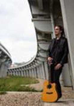 A man leaning against bridge pillar, holding a guitar Pobierz baner (JPEG, 4,73 kB)
