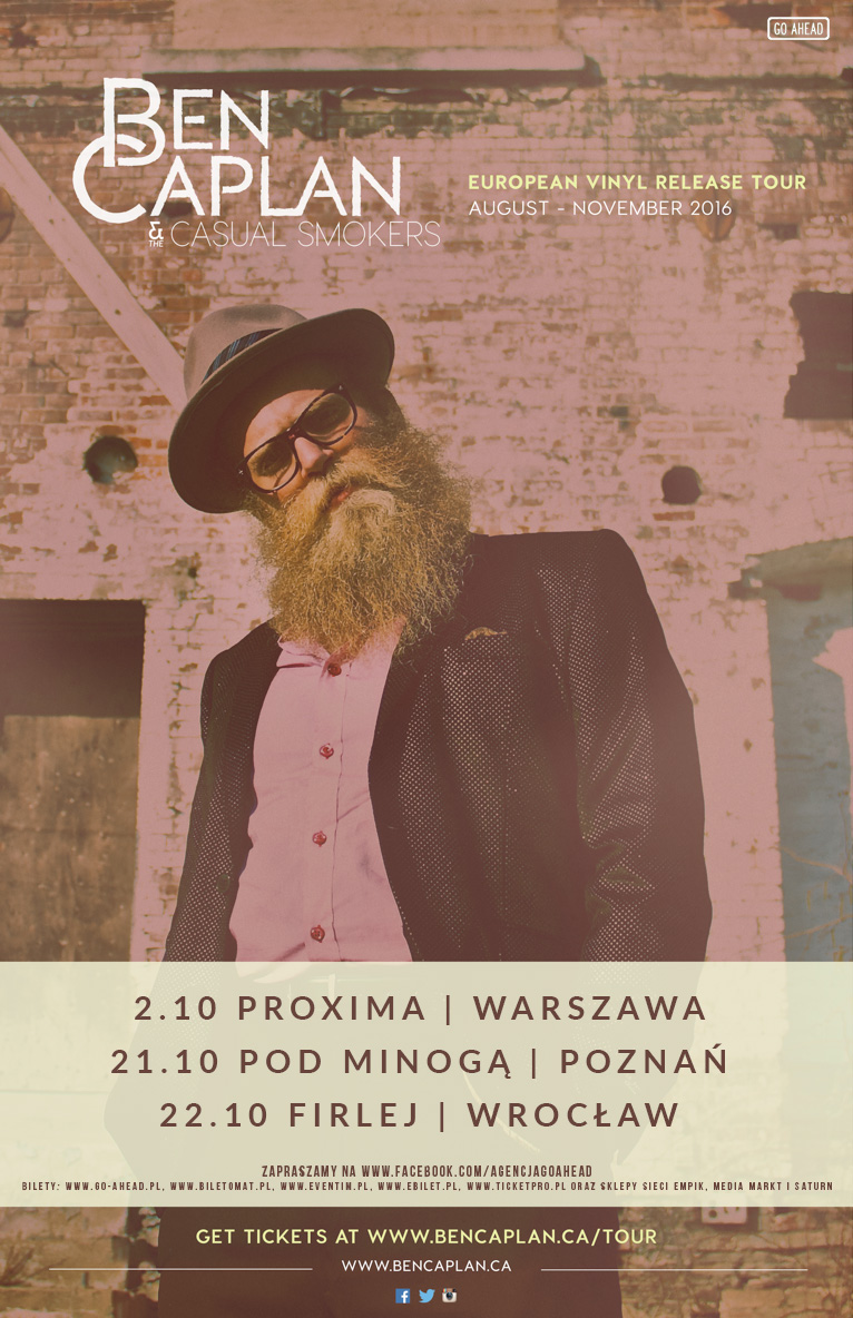 Chowający się za gęstą, długą brodą i bujną czupryną Caplan ma na swoim koncie dwa długogrające albumy. "In the Time of the Great Remembering" wydany w 2011 roku oraz "Birds With Broken Wings" z 2015 roku to rezultaty jego żmudnej i ciężkiej pracy. Ben zaczął poświęcać się muzyce już w wieku trzynastu lat, a w wieku dziewiętnastu lat postanowił, że jego kariera nabierze niezależnego rozpędu. Aktualnie artysta występuje wraz z zespołem The Casual Smokers, tym samym zapewniając fanom jeszcze większą dawkę muzycznych przeżyć. Bluesowo-folkowy kawałek "Down To The River" czy subtelna ballada "Drift Apart" to utwory, które bez wątpienia przywołują niezwykłe wspomnienia obecnym sympatykom urokliwego barda z gitarą, ale także zwrócą uwagę przyszłych miłośników jego niepowtarzalnych brzmień.