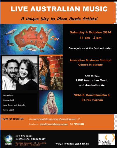 Utalentowana młodzież z Australii wystąpi na żywo przez transmisje internetową dla publiczności w Poznaniu. Po występie publiczność będzie miała możliwość rozmowy z artystami z drugiego końca świata.