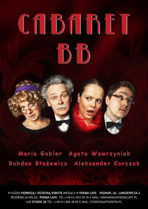 Wstęp 40 zł. Konieczna wcześniejsza rezerwacja. Poema Cafe, ul. Langiewicza 2 w Poznaniu. Więcej na stronie kabaretu: www.cabaretbb.art.pl