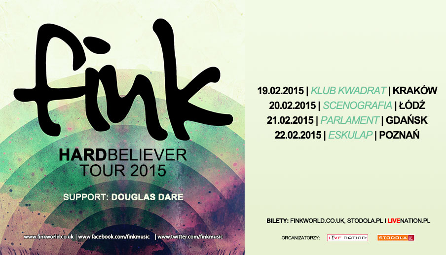 FINK to Fin Greenall, czyli brytyjski autor tekstów, gitarzysta, producent oraz DJ z Brighton, Guy Whittaker (bas) i Tim Thornton (perkusja). Hard Believer to nowy studyjny album Fink. Jest to pierwsze wydanie Fink z Ninja Tune Records imprint R'COUP'D, wytwórni nowoutworzonej przez Greenalla. Podobnie jak inne albumy Fink, "Hard Believer" obejmuje szeroki zakres muzycznych gatunków. Na albumie znajdziemy folk, electro, blues i trochę rocka, ale to dzięki tekstom piosenek Fink został uznany za jednego z wielkich brytyjskich współczesnych kompozytorów. Określenie Hard Believer oznacza kogoś, kogo trudno przekonać , kto wymaga dowodu.
