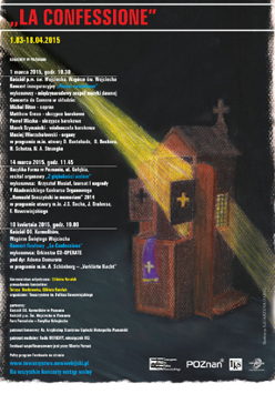 • 18 kwietnia 2015, godz. 19.00, kościół oo. Karmelitów, Wzgórze Świętego Wojciecha. Koncert finałowy "La Confessione". Wykonawcy: Orkiestra CO-OPERATE pod dyr. Adama Domurata. W programie m.in. Verklärte Nacht A. Schönberga