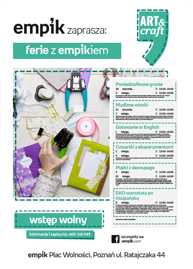 Informacja i zapisy pod numerem 605 110 549. Warsztaty bezpłatne.