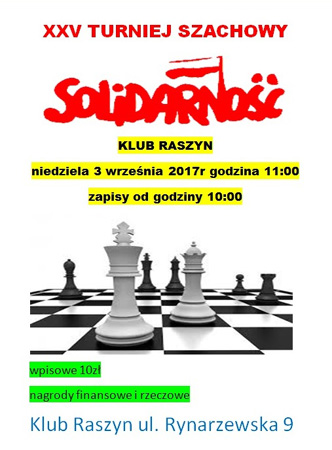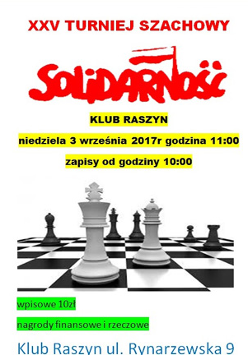 XXV Turniej Szachowy Solidarność organizowany przez Dariusza Lipińskiego przy wsparciu NSZZ Solidarność w Poznaniu.