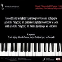 Koncert kameralistyki fortepianowej pedagogów Akademii Muzycznej im. Grażyny i Kiejstuta Bacewiczów w Łodzi oraz Akademii Muzycznej im. Karola Lipińskiego we Wrocławiu