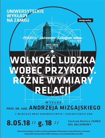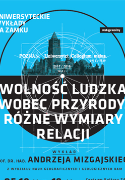 Wykład wygłosi prof. dr hab. Andrzej Mizgajski z Wydziału Nauk Geograficznych i Geologicznych UAM, a jego tytuł brzmi: Wolność ludzka wobec przyrody. Różne wymiary relacji.