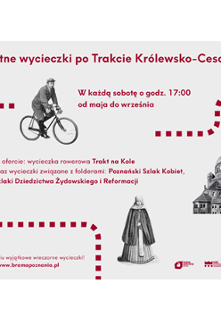Spacer z przewodniczką/przewodnikiem po Trakcie Królewsko-Cesarskim, drogą wytyczoną między dwoma dawnymi protestanckimi kościołami do dziś obecnymi w przestrzeni miasta. Poszukamy miejsc, które przypominają o dawnych społecznościach protestantów żyjących w stolicy Wielkopolski, a także o ich materialnym i niematerialnym dziedzictwie. Znane, mocno zakorzenione w krajobrazie miasta zabytki i przestrzenie pokażą się nam z nietypowej, często zapomnianej perspektywy. Spacer zająć może do 2 godzin. Wycieczka powstała z okazji rocznicy 500-lecia Reformacji w 2017 roku.
