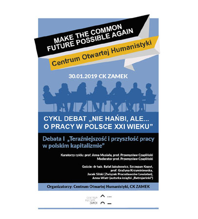 Pierwsza debata - zatytułowana "Teraźniejszość i przyszłość pracy w polskim kapitalizmie" - odbędzie się 30 stycznia 2019. Moderator: prof. Przemysław Czapliński.