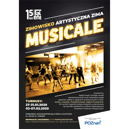 UWAGA: Udział w zimowisku"Artystyczna zima- musicale" jest bezpłatny, projekt jest współfinansowany ze środków Miasta Poznania i kierowany do uczniów poznańskich szkół.