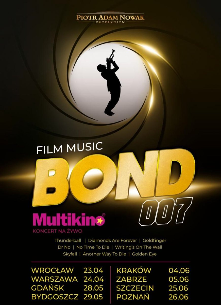 Bond 007 to wyjątkowy koncert na żywo,  podczas którego znakomici wokaliści i zespół instrumentalistów zaprezentują najpopularniejsze utwory towarzyszące przygodom Jamesa Bonda. James Bond - ikona, której nikomu przedstawiać nie trzeba. Filmy z udziałem charyzmatycznego Agenta 007 kojarzą nam się najczęściej z pięknymi kobietami u jego boku, szybkimi samochodami i wstrząśniętym martini z wódką. Ale nie tylko. Każda produkcja Bonda to gwarancja znakomitych motywów muzycznych, które błyskawicznie przechodzą od kanonów światowej muzyki.   Usłyszymy zatem hity z 11 filmów z udziałem Agenta 007: "Goldfinger" oraz "Diamonds are forever" Shirley Bassey, "GoldenEye" Tiny Tuner z filmów pod tym samym tytułem, "A View To Kill" Duran Duran z filmu "Zabójczy widok", "Nobody Does It Better" Carly Simon z produkcji "Szpieg, który mnie kochał", "Thunderball" Toma Jonesa z "Operacji Piorun", "Live and Let Die" Paula McCartney'a & Wings z "Żyj i pozwól umrzeć", "Another Way to Die" Jacka White'a i Alicii Keys z "007 Quantum of Solace" "Tomorrow Never Dies" Sheryl Crow z "Jutro nie umiera nigdy" i wreszcie nagrodzone Oscarami utwory "Skyfall" Adele i "Writings On The Wall" Sama Smitha.