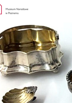Zdjęcie srebrnych naczyń i logo Muzeum Narodowego.