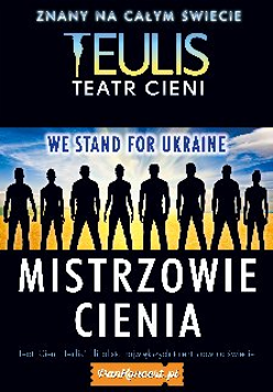 Światowej sławy ukraiński Teatr Cieni Teulis, ceniony w wielu krajach Europy i innych kontynentów, już niebawem dotrze do Polski! To oryginalne połączenie wysokiej klasy akrobacji, teatru, iluzji optycznych, doskonałego akompaniamentu dźwiękowego z oszałamiającymi efektami video. To show na miarę XXI wieku! Sztuka teatru ma już kilka tysięcy lat, ale w ostatniej dekadzie przeżywa ożywienie i niebywały rozwój. Idea teatru cieni jest zadziwiająca w swojej prostocie i opiera się na cudach transformacji. Wystarczy, że aktor wejdzie za półprzezroczysty ekran, by widzowie śledzić mogli wspaniałą animację: wyłaniające się po sobie ciemne figury, przeistaczające się, a po chwili zmieniające rozmiar.