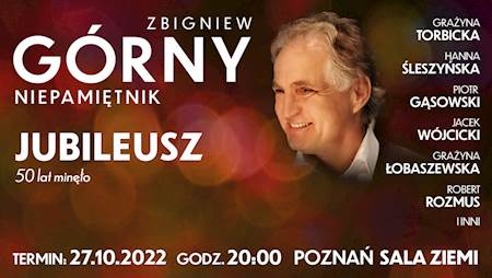 Szanowni Państwo - właśnie mija 50 lat mojej działalności artystycznej, począwszy od poznańskiego Tey'a, poprzez liczne Opola, Sopoty, Biesiady, cykle programów telewizyjnych (m.in. Imiennik Dwójki, Co mi w duszy gra), muzykę filmową, po tysiące koncertów w Polsce i na całym świecie. Wspólnie z moimi przyjaciółmi - Grażyną Torbicką, Hanną Śleszyńską, Grażyną Łobaszewską, Piotrem Gąsowskim, Robertem Rozmusem, Jackiem Wójcickim oraz innymi gośćmi zapraszamy Państwa serdecznie na mój jubileuszowy koncert. Powspominajmy i pośpiewajmy razem!