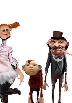 Zdjęcie kilku lalek o karykaturalnych rysach twarzy. Pobierz baner (PNG, 365,33 kB)