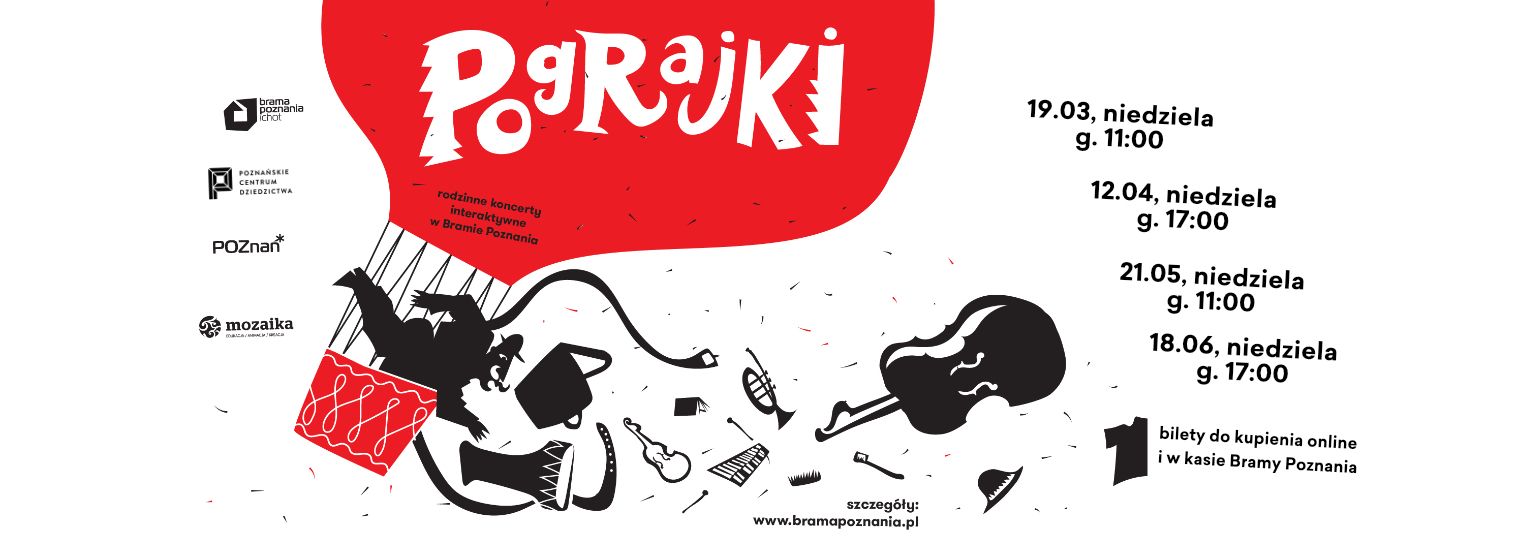 Pograjki to cykl interaktywnych koncertów rodzinnych. W trakcie naszych spotkań będziemy mieli okazje poznać zwyczaje muzyczne, tradycje i opowieści nie tylko z Polski, ale także z innych regionów świata, każdorazowo szukając ich związków z lokalną historią Poznania. Koncerty są świetną okazją do spędzenia czasu ze sztuką, w rodzinnym gronie. W ich trakcie dzieci i rodzice poznają w praktycznej formie kulturę tradycyjną w ujęciu muzyki instrumentalnej, śpiewu, tańców, instrumentów muzycznych, zwyczajów, obrzędów i innych wyróżników kulturowych.  Stawiamy na interaktywny charakter kontaktu dzieci i rodziców z kulturą - będą mieli szansę być zarówno odbiorcami, jak i jej uczestnikami.