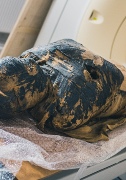 Ekspozycja zaprezentuje możliwości wykorzystania niektórych współcześnie stosowanych technik do badań nieinwazyjnych obiektów archeologicznych. Charakter takich badań ma szczególne znaczenie w przypadku egipskich mumii, ponieważ nie narusza ich struktury. Bez rozwijania bandaży, nacinania tkanki miękkiej, w sposób niedestrukcyjny można uzyskać wiele informacji, a wręcz dokonać wirtualnej autopsji. Możliwe jest między innymi określenie płci oraz wieku osoby w chwili śmierci, rozpoznanie niektórych chorób i przebytych urazów, pomierzenie kości i identyfikacja ciał obcych (np. ozdób), a nawet zbadanie sposobu mumifikacji, stanu zachowania tkanek i bandaży. Konfrontacja efektów obecnych metod z do niedawna stosowanymi praktykami rozwijania mumii z bandaży, uwiecznionych na archiwalnych zdjęciach, dobitnie pokazują przełom, jaki dokonał się na przestrzeni ostatnich lat w tego typu badaniach.