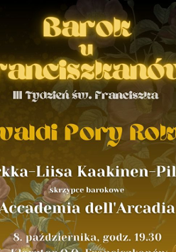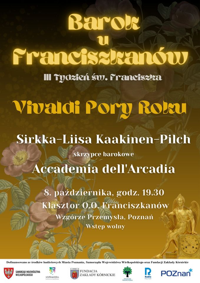 Legendarny cykl czterech koncertów skrzypcowych Antonia Vivaldiego prezentowany będzie w oryginalnej wersji kompozytora z zachowaniem barokowych zasad interpretacji dzieł muzycznych. Partię solową wykona wybitna fińska skrzypaczka - Sirkka-Liisa Kaakinen-Pilch, która oprócz szerokiej działalności fonograficznej jest także rozchwytywanym pedagogiem, prowadząc klasę skrzypiec barokowych m.in. w Akademii Muzycznej w Krakowie. Towarzyszyć jej będzie wywodząca się z Poznania orkiestra barokowa Accademia dell'Arcadia w składzie: