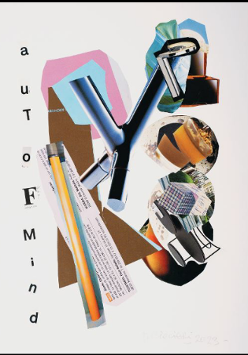 Na wystawie Tomasz Ciecierski. Aut of Mind prezentowane są kolaże z trzech powstałych w latach 2021-2023 cyklów: Aut of Mind, Ad Hoc i Neopop oraz kilka prac nienależących do żadnej serii. Już na poziomie tytułu zostaje ujawniona charakterystyka tych dzieł: są to pospieszne notatki, poczynione według reguł strumienia świadomości, nieskrępowane ograniczeniami. Pozarozumowy charakter dopuszcza możliwość zaistnienia błędów w zapisie, które uznane są następnie przez autora za intrygujące i przez to kontynuowane. Nietrudno można też w tych niedawno stworzonych pracach odszukać dwa motywy, którymi fascynację Ciecierski zdradzał już wcześniej, czyli przedmioty codziennego użytku i materiały będące pierwotnie częścią większej całości. Do scalenia i wyrażenia owych zainteresowań twórca odnalazł konkretną formę - kolaż, który łączy w sobie elementy konstruktywizmu i popartu; szczególnie seria Neopop jest swoistym komentarzem do otaczającej nas zewsząd popkultury. Kolaże Ciecierskiego fascynują - obok wiadomości z dzienników porannych (często w obcych językach!) i tajemniczych tekstów o poetyckim wydźwięku ukazują się bohaterowie animacji, meble, uszczelki do rur i sprzęt kuchenny. Dezorientuje to odbiorcę, bo przedmioty i postacie - a może ich archetypy? - wyrwane ze swego zwyczajnego kontekstu zmuszają do postawienia pytań: jaką właściwie rolę odgrywają one w codzienności? Czemu służą? Jak ich forma wpływa na treść życia?