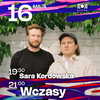 -Sara Kordowska- Na co dzień śpiewa o amstafach i tartach cytrynowych. Zespół wydał w październiku płytę Matki Wynalazku i zakończył trasę pod tym samym tytule. Projekt jest fuzją trąbki, elektronicznych brzmień, smutnej gitary i dziwnych słów. Tutaj pewnikiem jest dynamika, nieoczekiwane zwroty wizerunku czy gatunku. Sara Kordowska to kolorowa strona muzyki alternatywnej, która ma otulać i dziwić jednocześnie. Artystka poza tworzeniem i koncertowaniem, prowadzi autorską audycję w studenckim radio, rozmawiając z innymi artystami o trudach debiutu, procesie i nowych wydawnictwach. Zwyciężczyni Będzie Głośno Czwórki Polskiego Radia 19' idzie po większe sceny, występuje gościnnie w rapsach i prowadzi warsztaty z songwritingu z dziećmi. -Wczasy- Duet jest znany z takich przebojów jak "Dzisiaj jeszcze tańczę" (który trafił na ścieżkę dźwiękową do filmu "Fanfik"), "Jesteś najlepszy" (pojawia się w filmie "Sweat"), "Tyle słów" czy "Prince i Bowie". Od 2017 roku, zespół zagrał już ponad 200 koncertów w kraju i za granicą, m.in. na festiwalach: Open'er, OFF, Męskie Granie, Tauron Nowa Muzyka, Pop Messe, Creepy Teepee. Zespół Wczasy został uznany za ważne zjawisko na polskiej scenie muzycznej. Jakub Knera, w artykule na łamach "Dwutygodnika", tak podsumowuje twórczość duetu: "Można Wczasy potraktować jako deskę ratunku. Ich piosenki pozwalają okiełznać codzienny Weltschmerz, są narzędziem do oswojenia śmiechem depresyjnej rzeczywistości. Muzycy poruszają w nich wszystkie czułe dla millennialsów struny - lęk przed pracą, która jest zesłaniem, i przed porażką w niekończącym się wyścigu o dobra materialne, symboliczne i emocjonalne. Równocześnie zachęcają do tańca, jakby miało nie być poniedziałku."