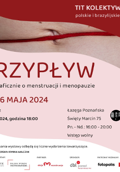 "Przypływ" to wystawa kobiecego kolektywu fotograficznego TiT oraz zaproszonych fotografek z Brazylii. Artystki przedstawiają refleksje nad doświadczeniem krwawień menstruacyjnych oraz ich społecznych konsekwencji. Wystawa jest zbiorem wizualnych impresji na temat zjawiska, które w dalszym ciągu jest omijane w publicznych debatach, mimo że dotyczy ponad połowy populacji.