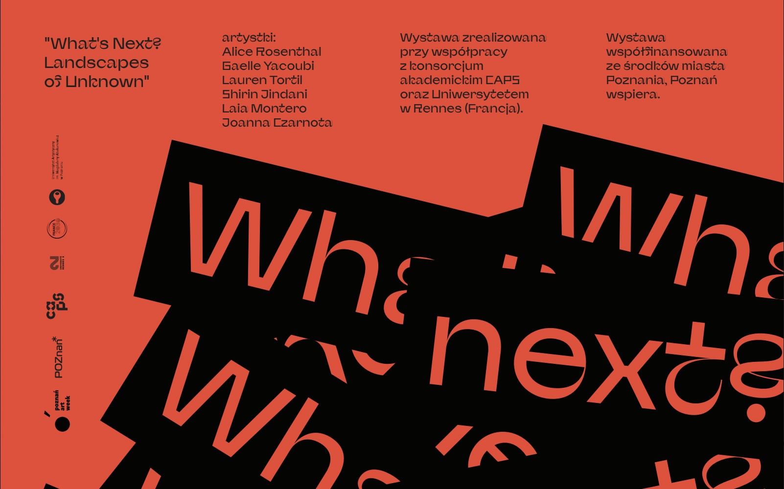 Wystawa "What's Next? Landscapes of Unknown" prezentuje prace pięciu artystek wybranych w ramach open call przeprowadzonego przez partnerów międzynarodowego konsorcjum CAPS. Zaprezentowane dzieła łączy związek z miejscami oraz przeżyciami ludzi, artystek i/lub osób z nimi związanych. Poszczególne prace są zapisami wrażeń, ale także dokumentacją doświadczeń, często zaskakujących lub niewygodnych, czasem także nieprzyjemnych lub traumatycznych. Ich ogólna wymowa jest jednak pozytywna. Same prace wydają się bowiem swoistym remedium na troski, odpowiedzią na problemy, lub po prostu próbą przepracowania tego co minione, ale obecne śladem swojego wspomnienia. Kolejnym łącznikiem jest związek z miejscem, stąd tytuł, w relacji do pytania o decyzje, które muszą zostać podjęte, aby na nowo zdefiniować się do tego, co minione.