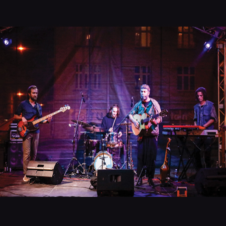 Czterech członków zespołu na scenie w trakcie koncertu. Pobierz baner (JPEG, 158,02 kB)