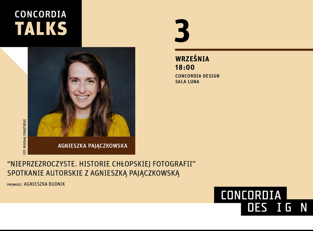 Gościnią podczas wtorkowego #ConcordiaTalks będzie autorka książki "Nieprzezroczyste. Historie chłopskiej fotografii" - Agnieszka Pajączkowska. Chłopska fotografia - ta rodzinna, prywatna - nie ma zwykle odrębnego miejsca w archiwach czy instytucjach. Przez wiele dekad mało kto się nią interesował, nie była traktowana jako część "narodowego dziedzictwa", a śladowa liczba zachowanych zbiorów pozwala sobie wyobrazić, ilu zdjęć i historii nie da się nigdy odzyskać, ile fotografii zostało spalonych, wyrzuconych, nieodnalezionych.