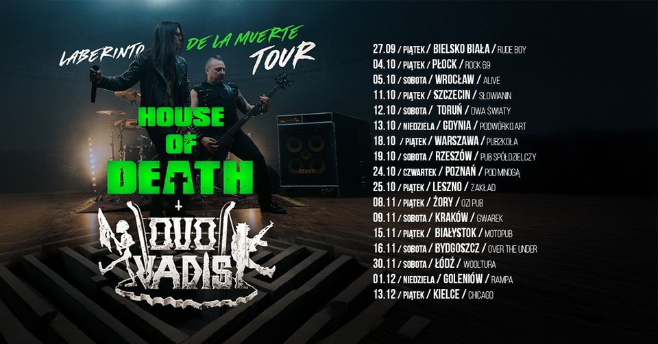 HOUSE OF DEATH to pochodzący z podszczecińskiego Goleniowa zespół, grający ciężkiego rocka założony w marcu 2019 roku. Skład grupy to zgrany kwintet wyjątkowych muzyków, których zjednoczyła miłość do czystej, nieskrępowanej muzyki rockowej. Na czele hardrockowej machiny stoi charyzmatyczny, pochodzący z Meksyku Juan Carlos Cano, a skład uzupełniają: gitarzyści Jarek Chilkiewicz z grupy Piotra Cugowskiego i Adam Bielczuk z Anti Tank Nun. Na basie gra lider legendarnego Quo Vadis - Tomasz "Skaya" Skuza. "Maszynę do robienia grzmotu" obsługuje niepowtarzalny Szymon "Sajmon" Synówka (My Riot).