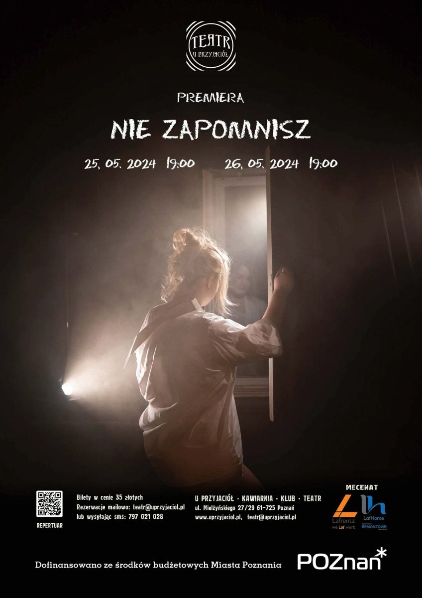 Kobieta w białej koszuli, stojąca tyłem otwiera okno. Zdjęcie w półmroku, sylwetka kobiety jest oświetlona. U góry i na dole plakatu informacje o wydarzeniu.