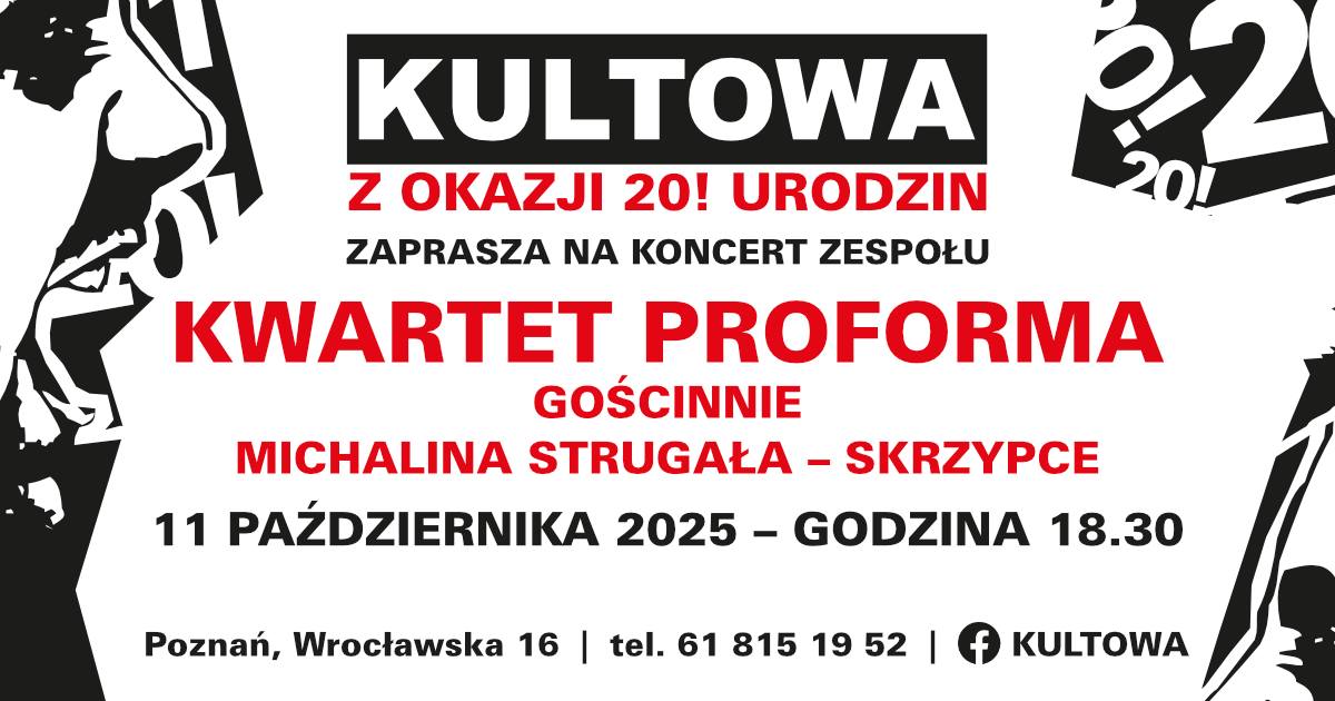 Kwartet ProForma zagra z okazji 20. urodzin Kultowej. W programie koncertu wybrane piosenki z Taty Kazika, Taty 2 i Tata Kazika kontra Hedora.