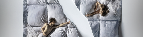 Kobieta i mężczyzna leżą na jasnej pościeli naprzeciwko siebie po skosie, wyciągając do siebie ręce. Pobierz baner (PNG, 123,40 kB)