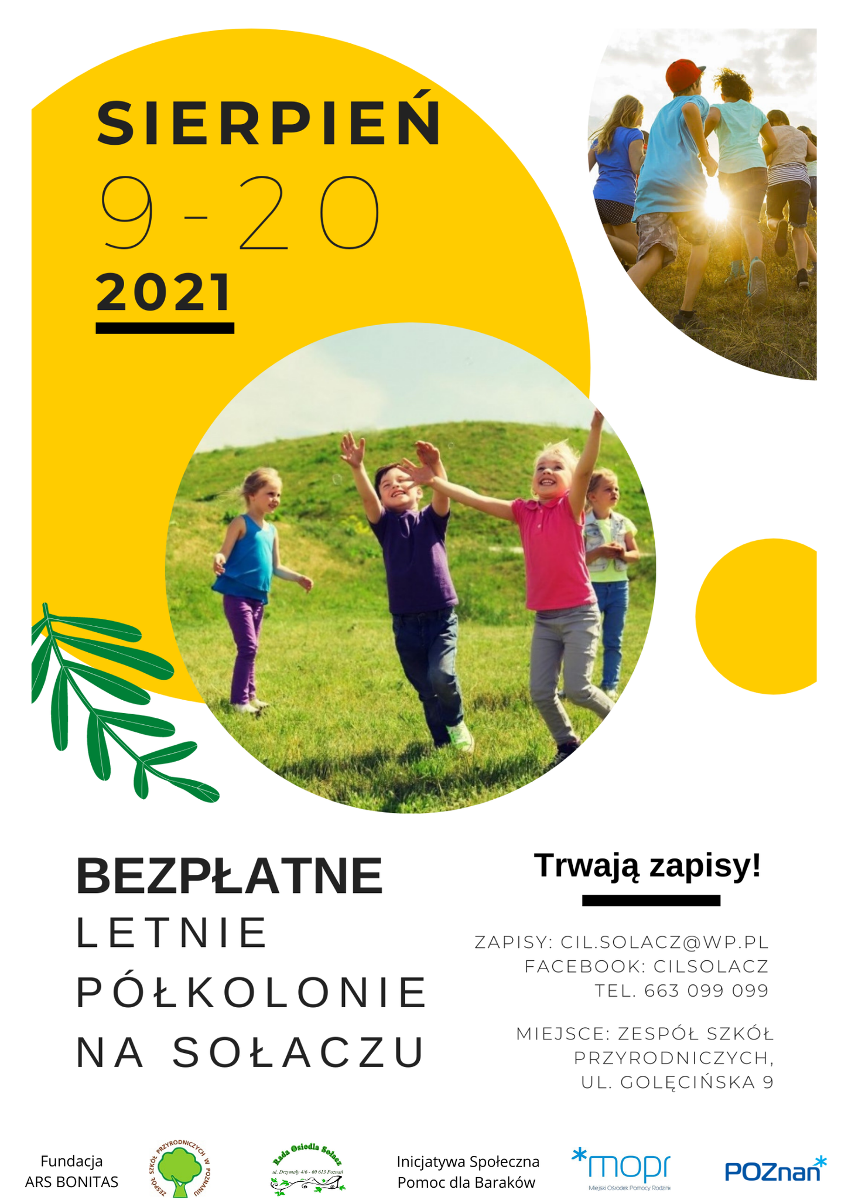 Fundacja Ars Bonitas zaprasza na dwutygodniowe, bezpłatne letnie półkolonie filmowo-artystyczno-sportowo-wycieczkowe na Sołaczu.