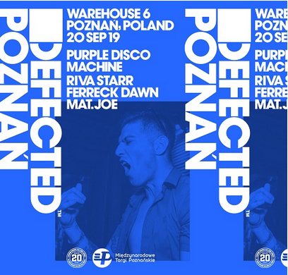 "Defected Poznań" to wydarzenie zainicjowane przez czołową, brytyjską wytwórnię muzyczną Defected Records. To dzięki nim jednego wieczoru na jednej scenie zaprezentują się tacy muzycy, jak: PurpleDiscoMachine, Ferreck Dawn, RIVA STARR oraz Mat.Joe. Ich koncerty przyciągają tłumy fanów na całym świecie, a ich kawałki cieszą się popularnością liczoną w milionach odtworzeń. To pierwszy raz, gdy Defected rozkręca imprezę w Polsce.