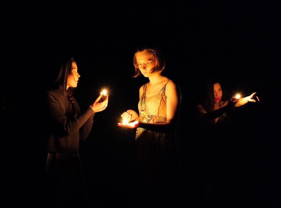 Spektakl unplugged. Ciemność jest w nim najważniejszym aktorem, płomień zapałek jedynym oświetleniem, a ruch i gest wymownym środkiem przekazu. Aktorki mają do dyspozycji tylko krótką chwilę, tak ulotną jak czas spalania się zapałki.