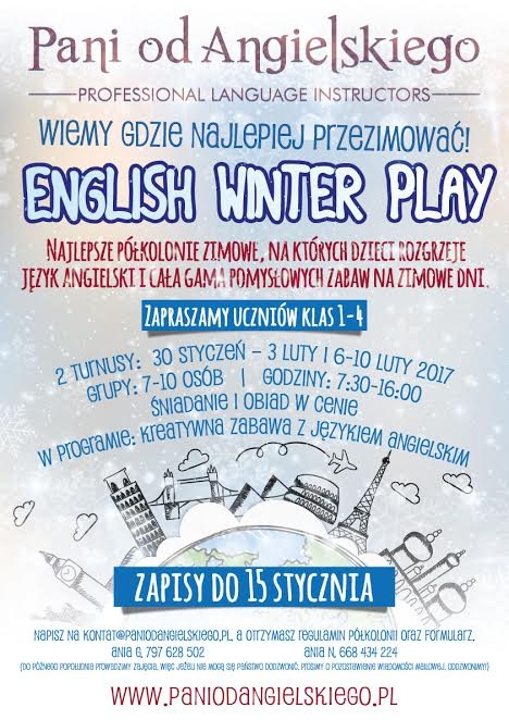 Pani od Angielskiego zaprasza dzieci z klas 1-4 na półkolonie językowe pełne wrażeń !