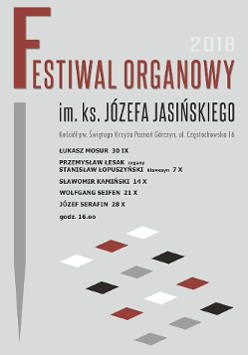 Kolejna edycja Festiwalu Organowego im. ks. Józefa Jasińskiego w kościele Świętego Krzyża. Festiwal został zapoczątkowany w 2013 roku, po ukończeniu remontu imponującej wielkości czteromanuałowych organów. W ramach tegorocznej edycji po raz kolejny odbędzie się 5 koncertów połączonych z wykładami. Jeden z nich będzie upamiętnieniem postaci budowniczego górczyńskich organów - Bronisława Cepki - którego 15. rocznica śmierci przypada w 2018 roku. Koncert "Bronisław Cepka in memoriam" 14 października wykona profesor poznańskiej Akademii Muzycznej Sławomir Kamiński, a w wykładzie poświęconym postaci zasłużonego wielkopolskiego organmistrza przybliży jego działalność. Podczas festiwalu będziemy mieli okazję również usłyszeć jednego z najbardziej utytułowanych polskich organistów, profesora Józefa Serafina z Krakowa, dyrektora artystycznego Festiwalu Organowego w Kamieniu Pomorskim, który po koncercie opowie o dziejach tamtejszych organów - jednego z najcenniejszych zabytków budownictwa organowego w Polsce. Niewątpliwą gratką dla miłośników muzyki organowej będzie koncert gościa specjalnego - prof. Wolfganga Seifena z Universität der Künste w Berlinie, jednego z najbardziej uznanych improwizatorów na świecie.