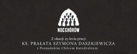 Okazją do zorganizowania tegorocznej edycji Nocy Chórów jest rocznica 25-lecia pracy ks. prałata Szymona Daszkiewicza z Poznańskim Chórem Katedralnym. Dlatego w niedzielne popołudnie zaplanowano uroczysty koncert w Katedrze Poznańskiej.
