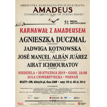 Wykonawcy: dyrygent: Agnieszka Duczmal, Jadwiga Kotnowska - flet, José Manuel Albán Juárez - instrumenty perkusyjne, Airat Ichmouratov - klarnet, Orkiestra Kameralna Polskiego Radia Amadeus