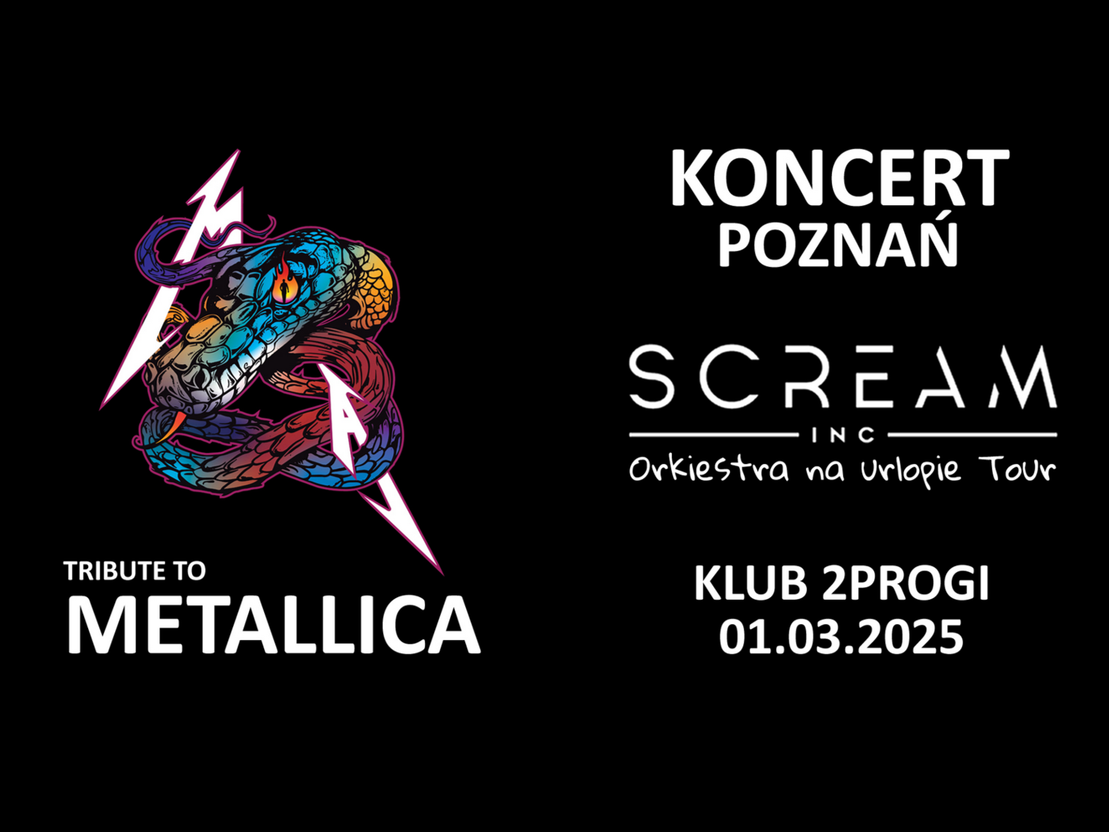 Kub 2progi zaprasza na koncert oddający hołd legendarnemu zespołowi "Metallica". Na scenie wystąpi "Scream Inc.", znany z wiernych odtworzeń kultowych kawałków muzyki heavy-metalowej.
