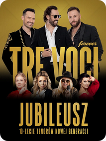 Tre Voci, tenorzy nowej generacji, świętują 10 lat na scenie! Voytek Soko-Sokolnicki, Mikołaj Adamczak i Miłosz Gałaj powracają z jubileuszową trasą "Forever", w której po raz kolejny zachwycą połączeniem operowych głosów z muzyką rozrywkową.