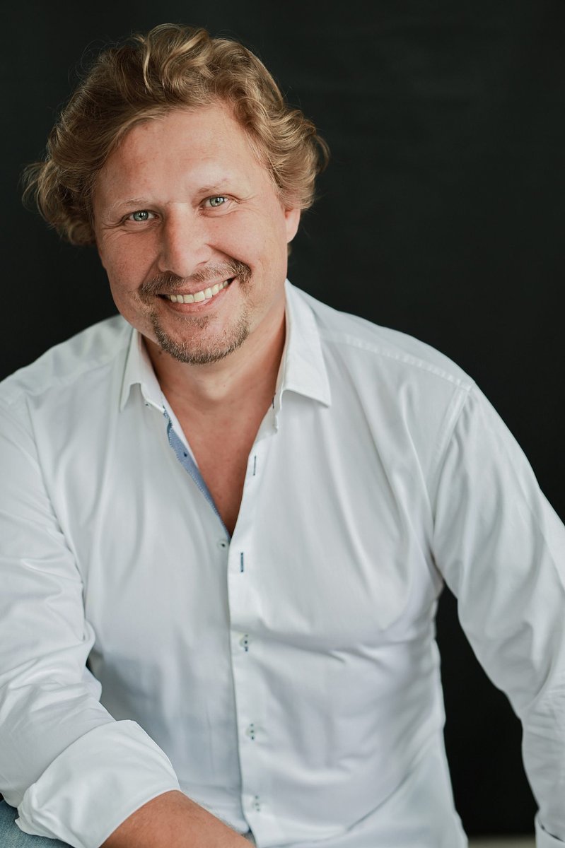 fotografia uśmiechniętego mężczyzny w białej koszuli