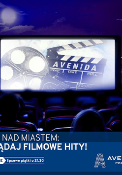Seanse w ramach "Kina nad miastem" będą wyświetlane w każdy piątek lipca (05.07, 12.07, 19.07, 26.07) o godzinie 21:30 i sierpnia (02.08, 09.08, 16.08, 23.08, 30.08) o godzinie 21:00 na dachu Centrum Handlowego Avenida (parking E).