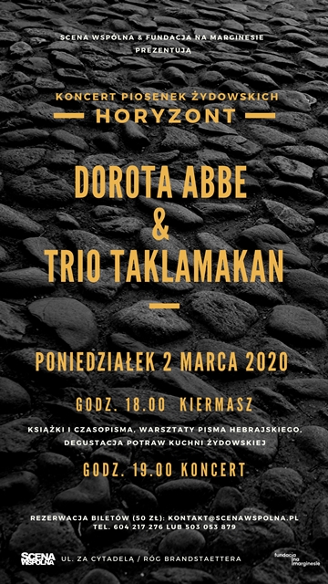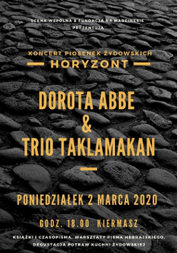 • godz. 19.00 koncert Dorota Abbe & Trio Taklamakan Horyzont koncert piosenek żydowskich