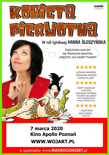 Sztuka "Kobieta Pierwotna" jest doskonałym odzwierciedleniem kobiety XXI wieku: poszukującej zabawy, korzystającej z życia, otwartej, podrywającej, a nie podrywanej, samowystarczalnej, ale w głębi serca marzącej o poważnym związku z odpowiednim mężczyzną. Jest dojrzała i doświadczona, ale nadal silna i pełna seksapilu. Mimo, że dawno przekroczyła "magiczną" 30stkę nie ma zamiaru rezygnować z uciech życia. Wydaje się, że ma w sobie więcej energii niż gromada nastolatek. Świadoma swojej wartości, nie owija w bawełnę, nie zgrywa świętoszki. Otwarcie opowiada o swoich miłosnych przygodach, "flirtuje" z publicznością, emanuje seksapilem, zaskakuje poczuciem humoru, przyznaje się do swoich słabości. Seks, alkohol, problemy z facetami? Nie ma dla niej tematów zakazanych. Podczas spektaklu niemal widać opary erotyzmu unoszącego się nad sceną. Historie, którymi bez końca zasypuje publiczność powodują, że nie można powstrzymać łez od śmiechu. Warto zatem wyrwać się ze swej domowej "jaskini" by nie przegapić cennej lekcji dotyczącej relacji damsko-męskich.