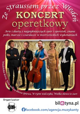 Ze Straussem przez Wiedeń to spotkanie z muzyką pełne niezapomnianych wrażeń! To także spotkanie z mistrzami opery i operetki - z Puccinim, Leharem, Kalmanem oraz królem walca - Straussem. W ten wieczór usłyszą Państwo utwory od lat bawiące całe pokolenia. W programie najbardziej znane i lubiane arie i duety, takie jak "Wielka sława to żart", "Usta milczą, dusza śpiewa", "W rytm walczyka" w wykonaniu utalentowanych młodych artystów - laureatów prestiżowych konkursów, koncertujących na co dzień zarówno w Polsce, jak i za granicą. W taneczny nastrój wprawią Państwa walce, polki i czardasze zagrane przez kameralny zespół instrumentalny. Nie zabraknie również wirtuozowskich popisów, jak choćby skrzypcowy "Czardasz" Montiego.