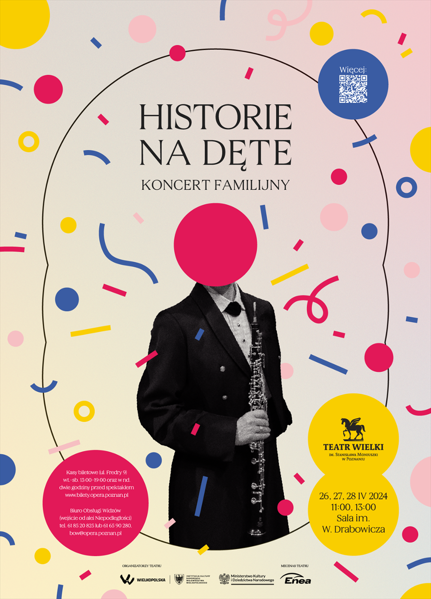 Czy instrumenty muzyczne potrafią opowiadać ciekawe historie? Czy te (na)dęte i do tego jeszcze drewniane uda się przekonać do odgrywania postaci w naszej bajce? Nie jest to najprostsze zadanie. Ale uzbrojeni w odpowiednią dawkę dobrego humoru i szczyptę teatralnej magii postanowiliśmy spróbować i podzielić się z Wami efektami w postaci nietuzinkowego koncertu familijnego, w trakcie którego muzykę przeplatamy opowieścią. Chodźcie posłuchać!