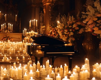 Baner promujący wydarzenie. Nazwa wydarzenia. W tle fortepian i świece. Pobierz baner (JPEG, 45,59 kB)