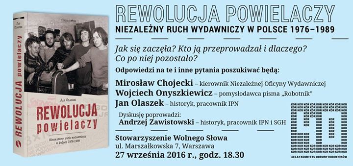 Nielegalne powielacze, redakcje i kolporterzy, dzięki którym do drugiego obiegu trafiały ulotki informacyjne, książki i gazety, to zjawisko wyjątkowe i na taka skalę niespotykane. O niezależnym obiegu wydawniczym i historiach ludzi z nim związanych rozmawiać będą autor książki "Rewolucja powielaczy" dr Jan Olszak oraz historycy.