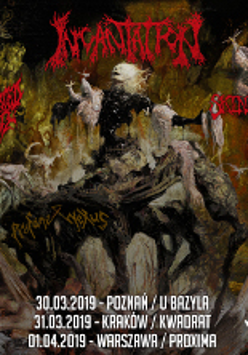 Po znakomitym występie na zeszłorocznym festiwalu Summer Dying Loud, Incantation wraca wiosną do Polski. "Onwards to Golgotha", "Mortal Throne of Nazarene" czy "Diabolical Conquest" to tytuły, które każdy fan death metalu musi znać. Jednak świętujący w tym roku 30-lecie działalności zespół Johna McEntee nie odcina kuponów od tych klasycznych płyt. Mimo częstych zmian składu, Incantation wciąż nagrywa znakomite albumy, takie jak wydany dwa lata temu "Profane Nexus", koncertuje na całym świecie i uosabia bezkompromisowego ducha ekstremalnego undergroundu. Polska jest stałym punktem na mapie każdego europejskiego tournee. Nie inaczej jest tym razem.