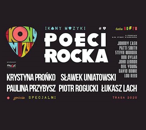 W projekcie Ikony muzyki - "Poeci rocka" zobaczymy artystów, których wrażliwość, doświadczenie oraz umiejętność interpretacji gwarantują wyborną muzyczną ucztę. Na tę zaproszą nas: Krystyna Prońko, Paulina Przybysz, Piotr Rogucki, Sławek Uniatowski i Łukasz Lach oraz wyjątkowi goście specjalni, którzy pojawią się podczas każdego z koncertów trasy. To właśnie w ich interpretacjach będziemy mogli posłuchać kultowych i ponadczasowych piosenek muzycznych legend takich jak, Bob Dylan, Johnny Cash, Stevie Wonder czy David Bowie. Ich wkład we współczesną muzykę jest nieoceniony, do dziś intrygują i inspirują artystów młodego pokolenia i całe rzesze słuchaczy.